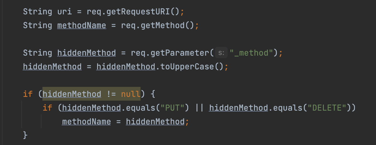 위 사진은 위에서 언급했던 내가 생각한 방법을 코드로 옮긴 것이다. 이렇게 변경하고 put, delete 메서드를 수신하는 테스트를 했을 때 정상적으로 작동했다....