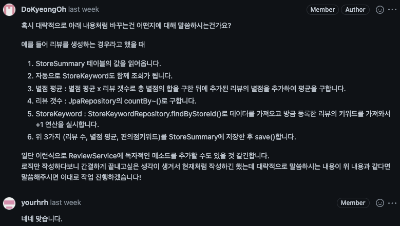 리뷰 관련 API가 완료되었고 모든 개발 사항이 develop 브랜치에 머지(merge)되었기 때문에 이 시점부터는 기능을 개발하면서 작성한 코드들에 대한 리팩토링을 해야 한다고 생각했다.