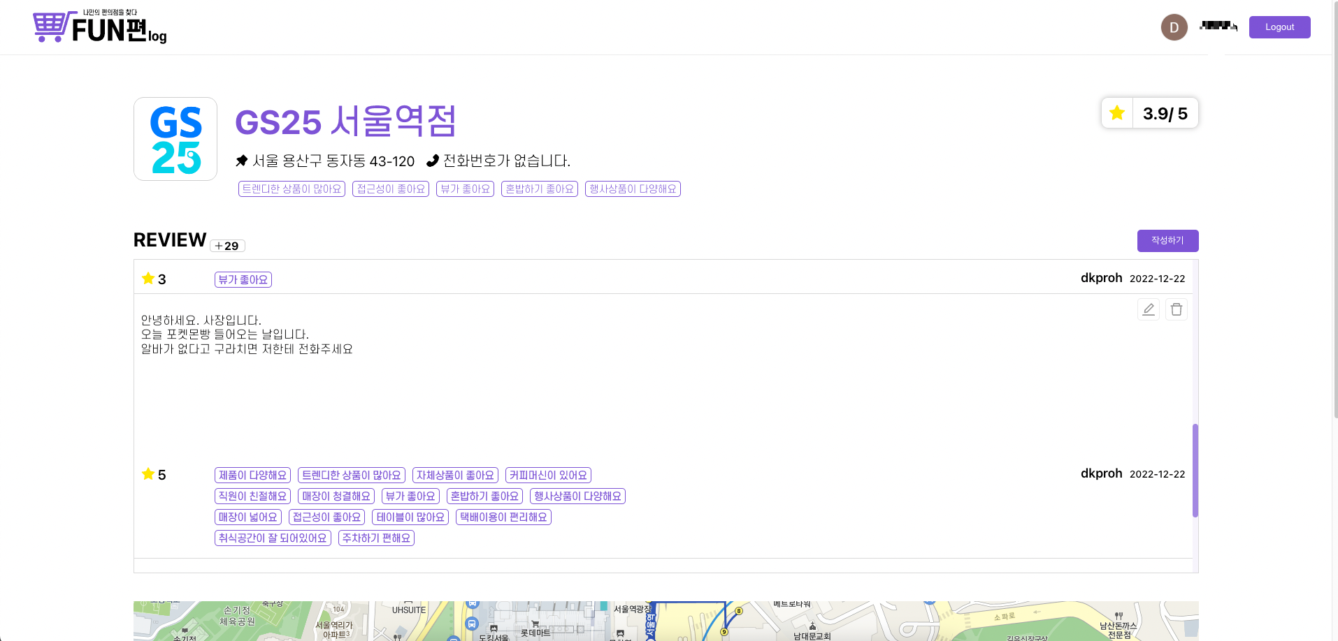 해당 리뷰들은 임의로 리뷰를 많이 넣어둔 것이다. (실제 편의점의 내용이 아니다)